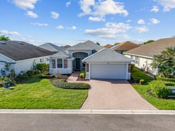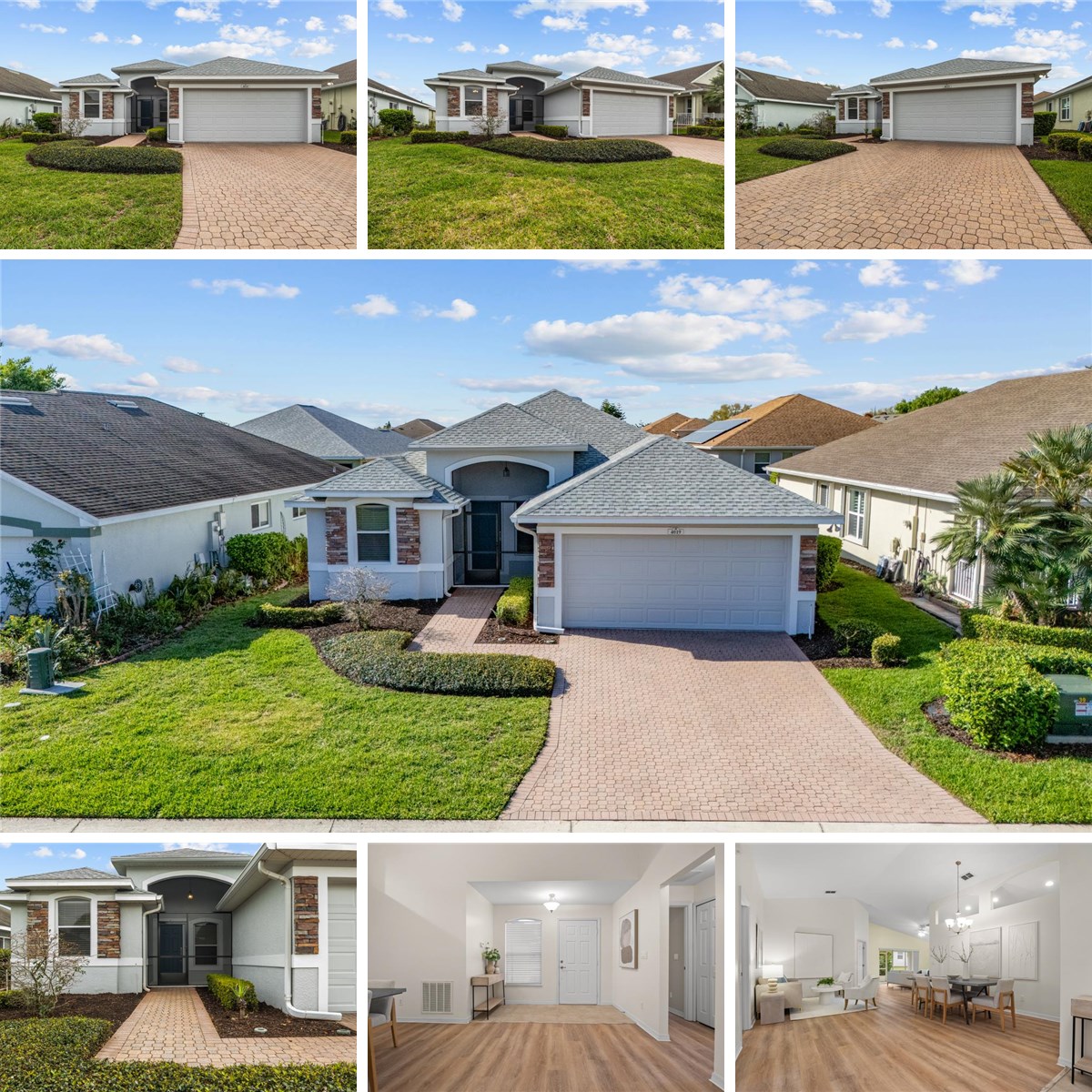 Welcome to this beautifully maintained residence located in the lakefront community of Traditions, one of Winter Haven’s premier 55+ gated communities known for its vibrant lifestyle and exceptional amenities. This thoughtfully designed 2 bedroom, 2 bathroom home also includes a versatile office that can easily serve as a third bedroom, along with a spacious family room that provides additional living space for relaxing or entertaining. Recent updates provide added peace of mind, including a brand new HVAC system and water heater, installed in March 2026, a new roof (November 2023), updated kitchen appliances (2024), fresh interior paint, and refreshed landscaping (2026). As you arrive, you’re welcomed by a covered and screened front entry. Inside, the open concept floor plan is enhanced by vaulted ceilings and a stylish blend of luxury vinyl flooring in the main living areas and ceramic tile in the kitchen, bathrooms and laundry room, creating both elegance and easy maintenance. The eat in kitchen is bright and inviting, featuring a closet pantry, stainless steel appliances that are just two years old and a comfortable dining space ideal for everyday meals. An interior laundry room is conveniently located just off the kitchen and provides direct access to the two car garage. Sliding glass doors from the living room lead to a screen enclosed patio, offering the perfect spot to unwind, entertain guests, or simply enjoy Florida’s beautiful year round weather. The primary suite serves as a relaxing retreat, highlighted by a tray ceiling, walk in closet and an ensuite bathroom with a double sink vanity and step-in shower. Outside, the property is beautifully framed by mature landscaping, with an attached two car garage, brick paved driveway and walkway that enhance the home’s inviting curb appeal. Residents of Traditions enjoy a true resort style lifestyle, featuring a lakefront clubhouse with a library, fitness center, card room, and billiards, as well as a resort style pool, hot tub and sauna. Additional amenities include tennis and shuffleboard courts, a dog park, a boat ramp and a dock overlooking Ruby Lake, providing endless opportunities for relaxation and recreation. The $484 monthly HOA fee covers lawn care (including bush/tree trimming and mulch replacement), exterior painting, cable, and internet. Ideally located near shopping, dining, and medical facilities with Publix opening soon just down the street, this home offers the perfect combination of comfort, convenience, and an active community lifestyle.