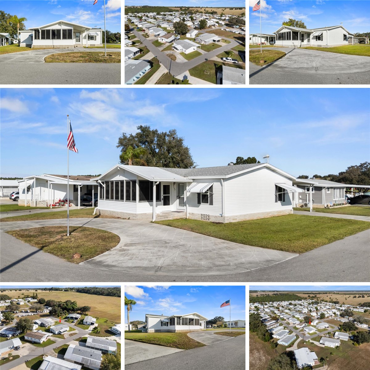 Welcome to this beautifully maintained and impressively updated 3-bedroom, 2-bath Homes of Merit double-wide manufactured home in Twin Fountains, a desirable 55+ community in Lake Wales where you OWN your land. Sitting on an oversized 0.14-acre corner lot, this property offers exceptional living space and parking with a circular driveway plus an additional driveway with covered parking. The exterior has been enhanced with brick skirting, giving the home a clean and polished look. Step inside to a bright, open floor plan featuring luxury vinyl plank flooring throughout the main living areas, updated carpeting in the bedrooms, and an added front Florida room with sliders that extends your living and relaxation space. Relax and enjoy your morning coffee or afternoon drink in this fantastic room while taking in the peaceful views. Besides the Front Florida room there are TWO additional screened lanais located behind the home offering additional covered outdoor space! This amazing home is being sold furnished, including a premium Serta adjustable queen bed in the primary bedroom (massage, head and foot rise), making this an easy turnkey move. The kitchen has been tastefully updated with GE stainless steel appliances, a tiled backsplash and offers plenty of cabinet and counter space, and a convenient breakfast bar. The inside laundry closet is located just off the kitchen for added convenience. All windows have been updated, and most of the interior has been freshly repainted, giving the home a crisp, modern feel. Both bathrooms have been improved, with the guest bath featuring a new glass door and tile, and the primary ensuite offering an upgraded state-of-the-art shower. The roof is about 5 years old. Twin Fountains is a well-maintained, land-owned 55+ community where the affordable $180 monthly HOA fee covers water, sewer, lawn maintenance, cable, internet, and access to amenities including a heated pool, shuffleboard, clubhouse, and community activities. Conveniently located near HWY-27, you’re close to shopping, restaurants, medical facilities, and everything you need for seasonal or year-round living. This is a truly move-in-ready home with upgrades in all the right place, perfect for enjoying the Florida lifestyle with comfort and ease. Book your appointment today!